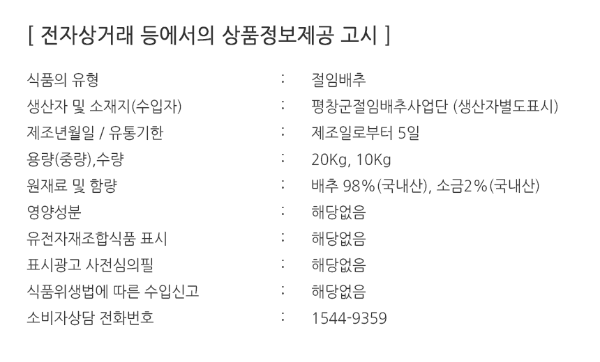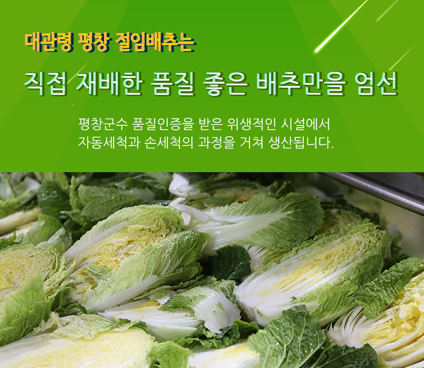 처음 강원도 배추를 시켰는데, 장모님이 생각외로 배추가 좋았다고 합니다. 겉과 속이 다 깨끗하고 생으로 먹어도 아삭하고 맛이 있다고 합니다. 포장도 잘되어서 와서 좋았습니다. 가격은 조금 비싼데 만족합니다. 다음에 또 주문하여고 합니다. 많이 파세요.